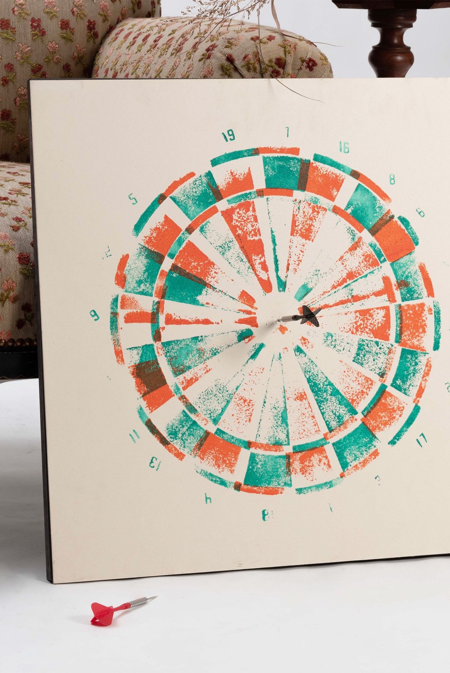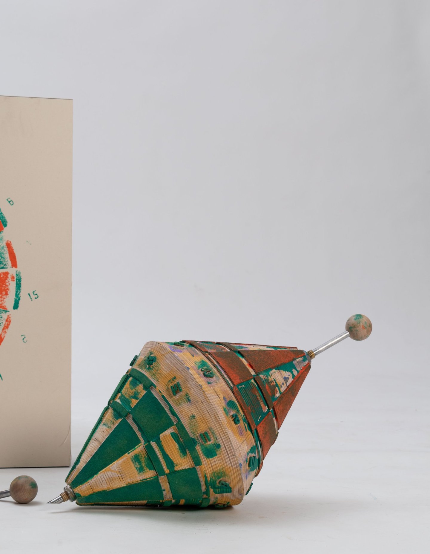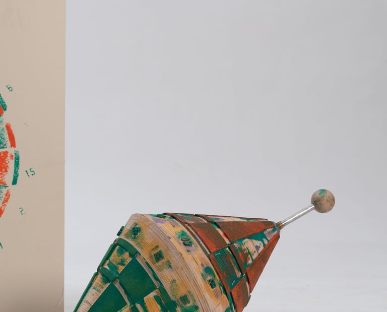 Cet objet réinvente l'archétype de la cible de fléchettes en le transformant en un outil de création artisanale. Fabriqué en bois, il se compose de plaques de contreplaqué fraisées, assemblées sur un axe. Inspiré du compas, sa forme conique permet de tracer des cercles et de produire des cibles en série de manière ludique. Vous pouvez ensuite jouer avec les couleurs pour créer une pièce graphique unique et personnelle. À vos marques, prêts, visez !
