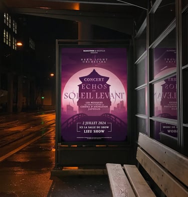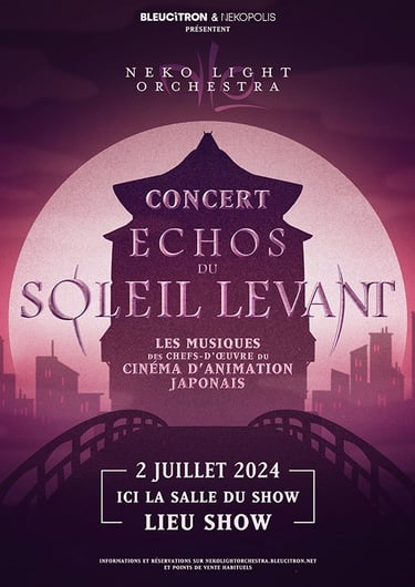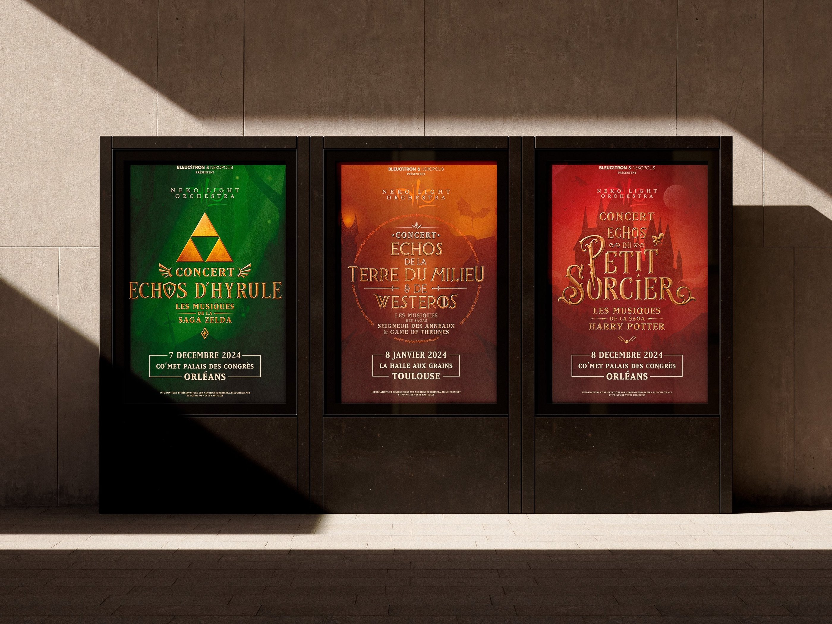 Réalisation des illustrations de la communication des spectacles, concerts et tournées du Neko Light Orchestra, produits par Bleu Citron, sous la direction artistique de Julien Escalas