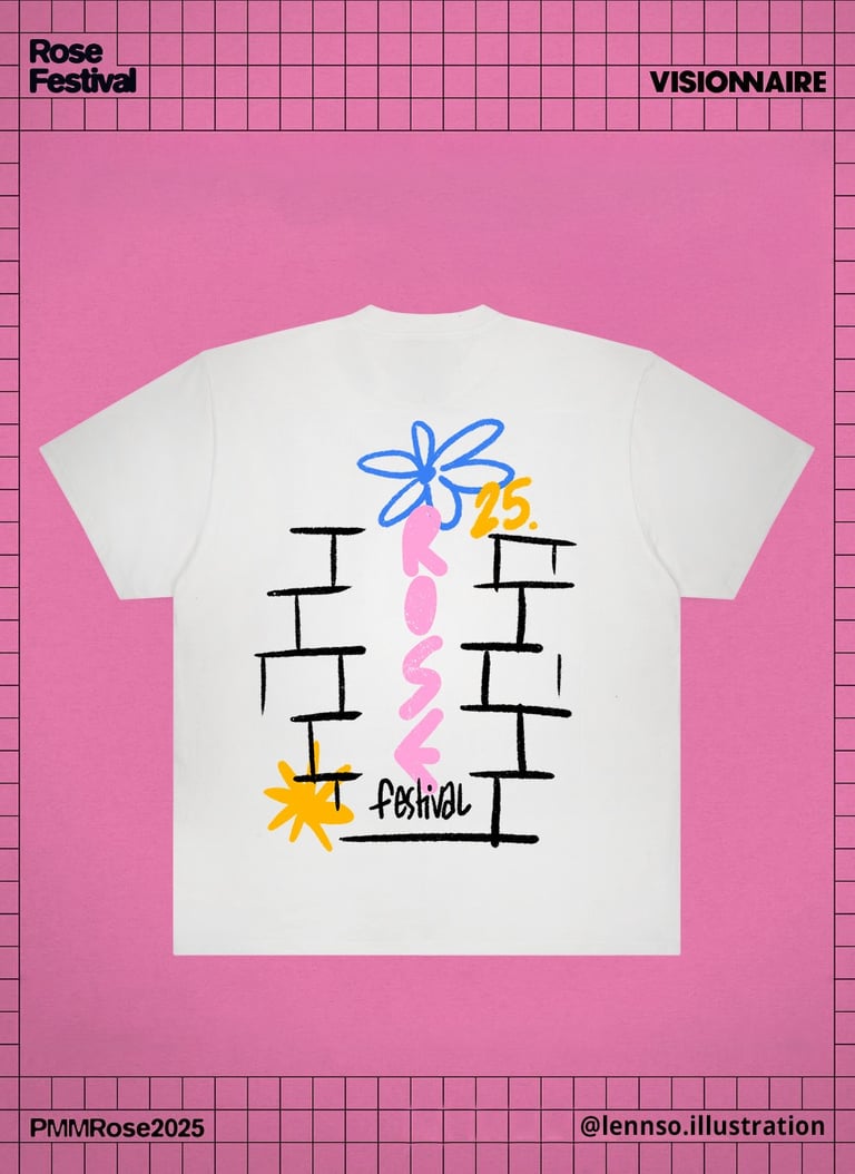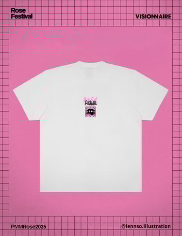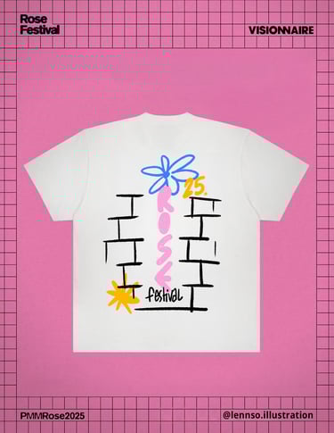 Dans le cadre d'un concours, j'ai réalisé ces visuels de T-shirts pour la marque de vêtement visionnaire, et pour le Rose festival.